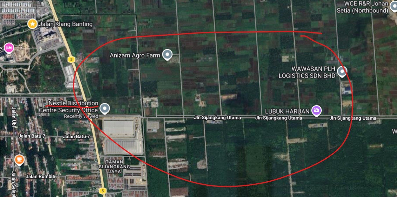 2 acres of potential industrial land just 500 metres east of Nestle warehouse at Johan Setia. It is 320 metres off Jalan Sijangkang Utama. Very suitable for industrial usage